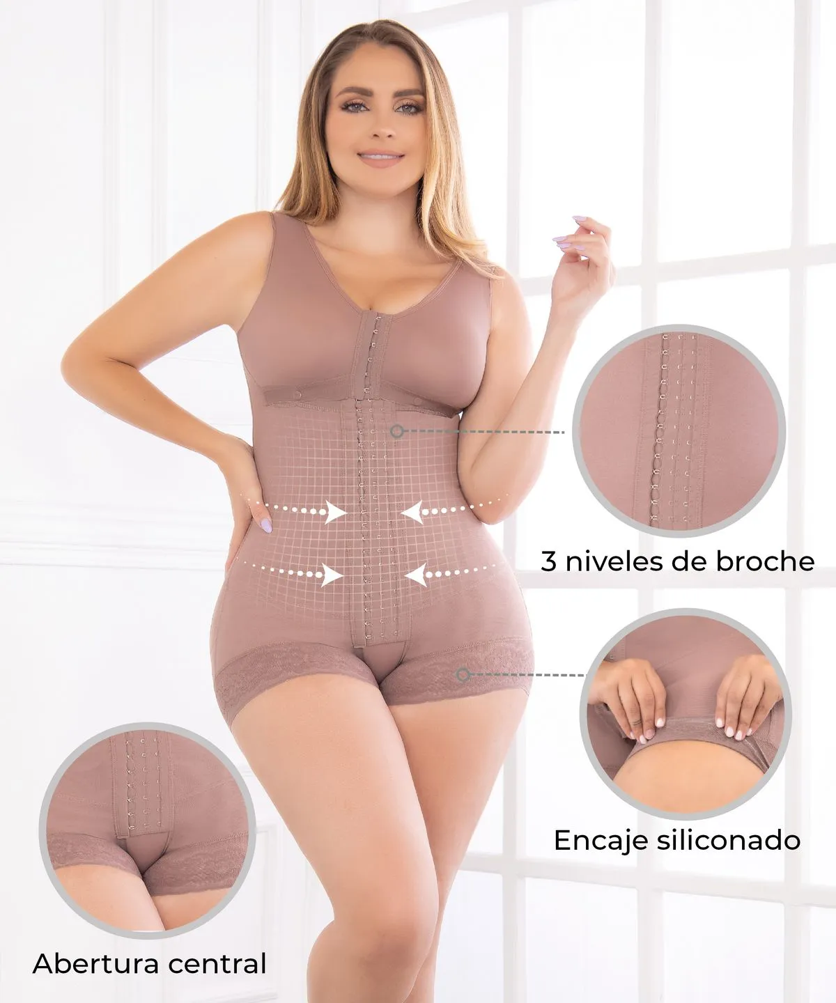 Made with an outer powernet and an inner lycra layer, it shapes the waist, abdomen, hips, back, and buttocks, enhancing the silhouette. Its flat seams are gentle on the skin, making it ideal for postpartum, post-surgery, or everyday wear.