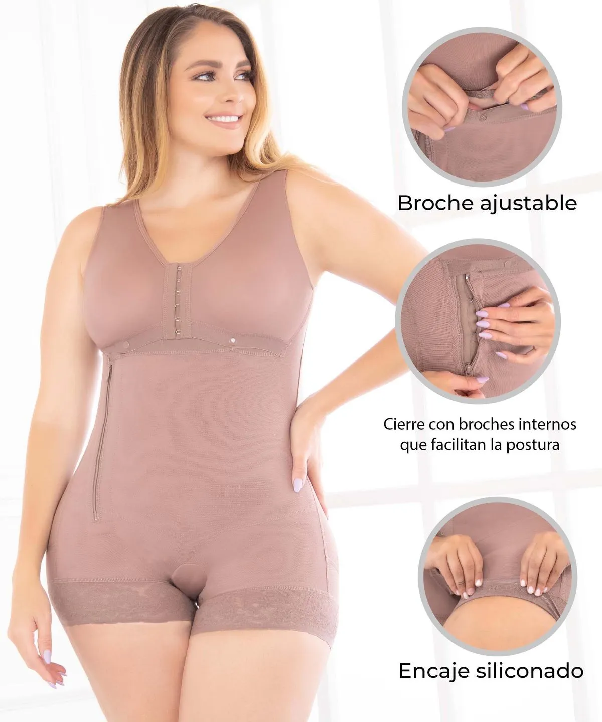 Enhances buttocks, slims torso and back, and provides abdominal support for added firmness. Flat seams prevent irritation. Ideal for everyday wear and post-surgical recovery.