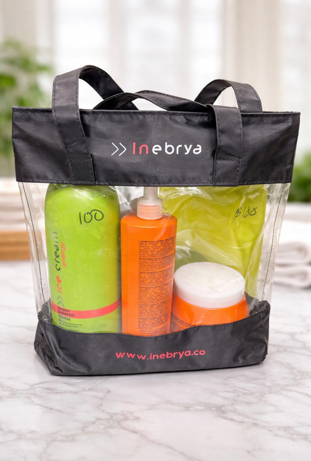 Take your professional hair care anywhere with this practical Inebrya kit. It includes a selection of essential products designed to cleanse, nourish, and hydrate the hair, helping keep it soft, shiny, and healthy. Its transparent bag makes storage and transport easy, making it ideal for daily use, travel, or professional purposes. Perfect for those seeking salon-quality results with convenience and style.